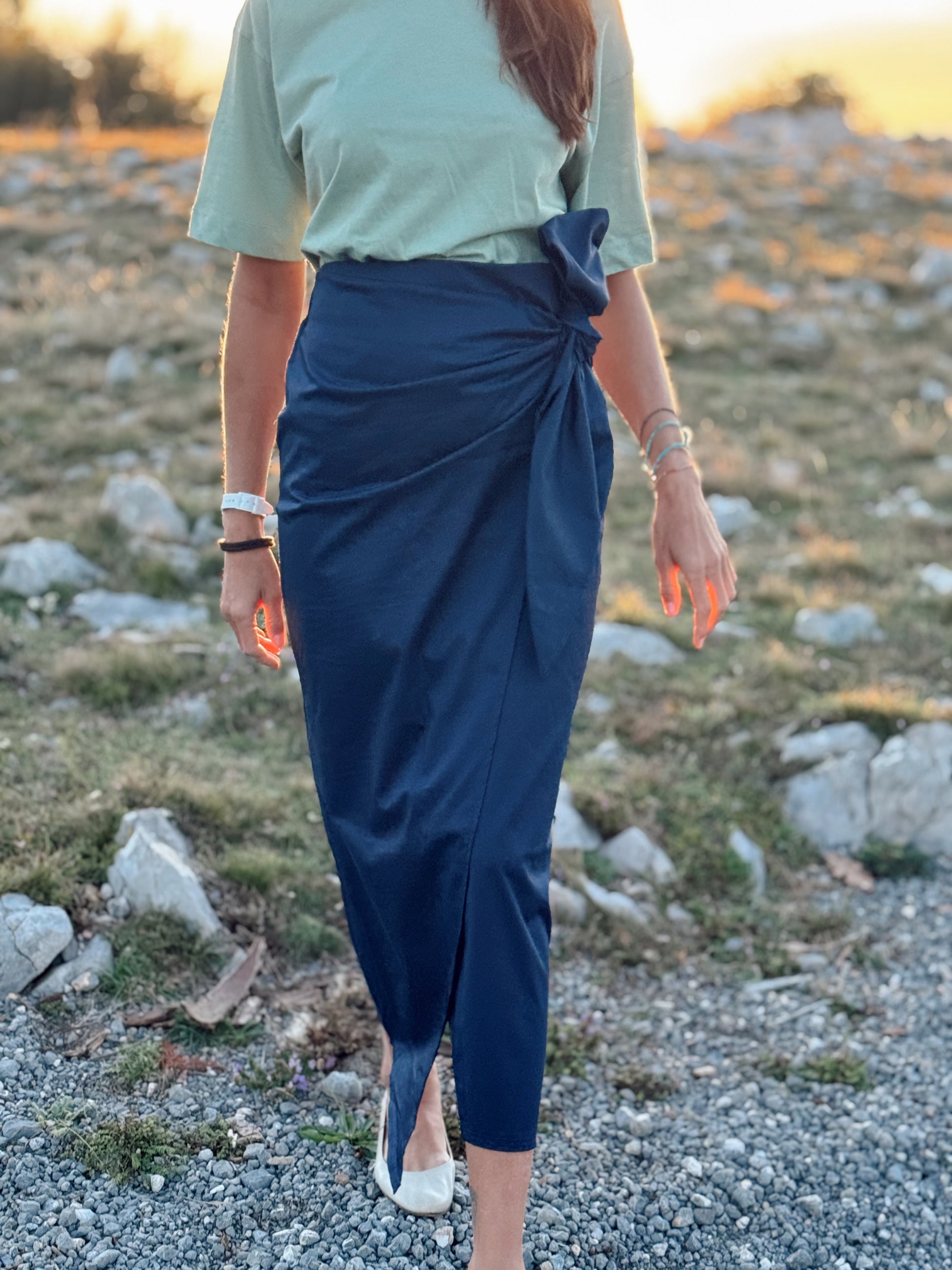 Otkrij Pulse plavu suknju na preklop – udobnu, ženstvenu i prilagodljivu. Dostupna u veličinama S, M i L.