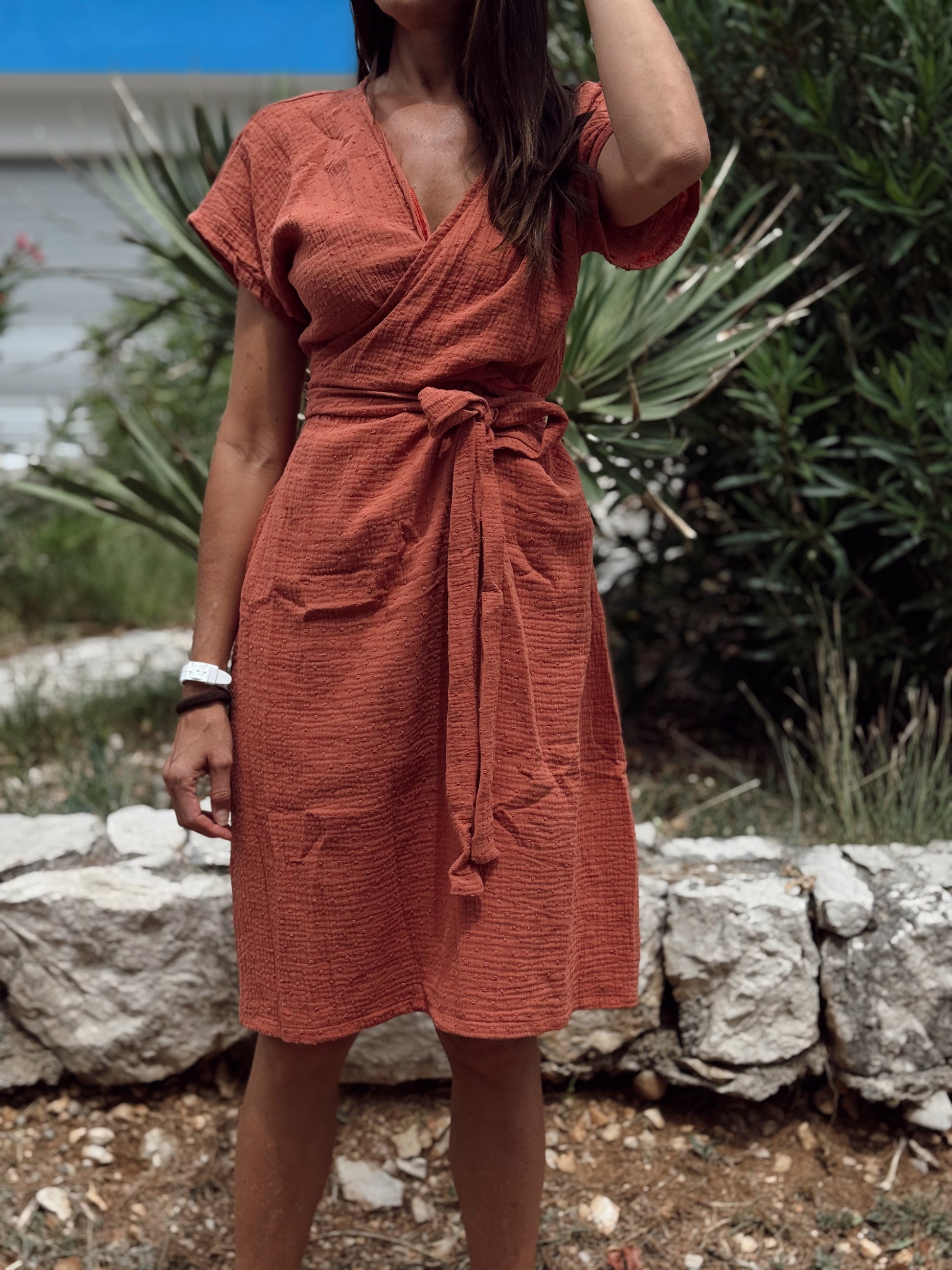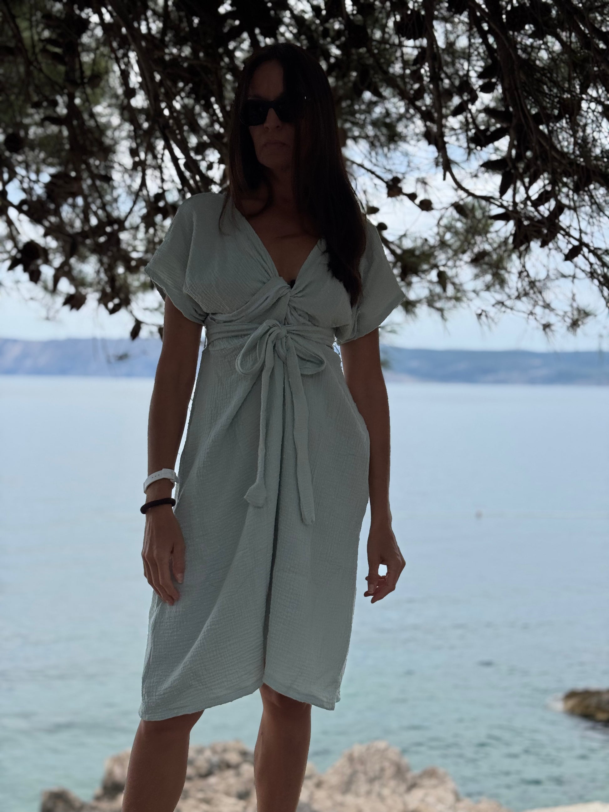 PULSE bež haljina od organskog pamuka - ljetna elegancija s twist detaljem